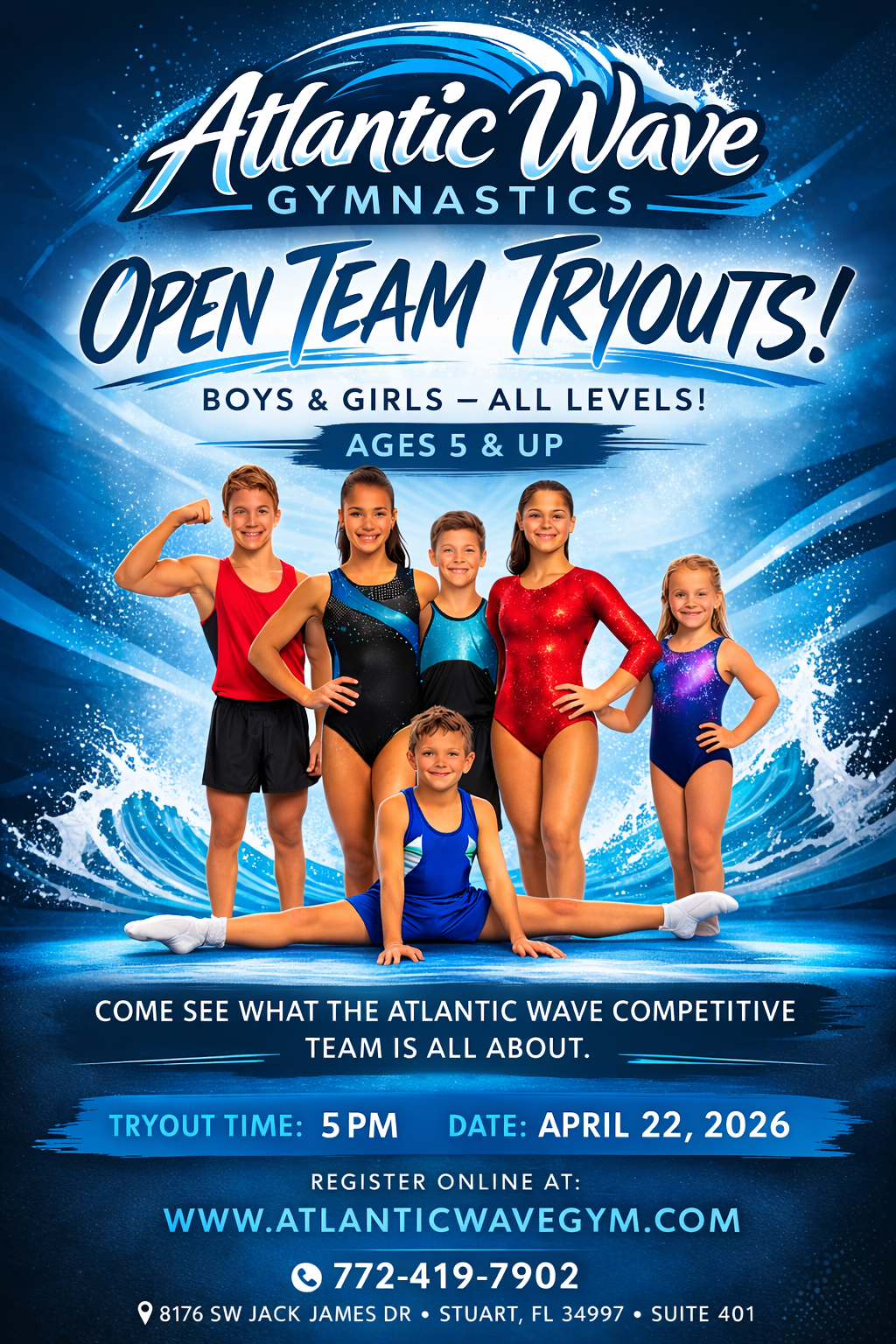 Whether your child wants to learn their first cartwheel or master a full routine, Atlantic Wave Gymnastics is the perfect place to grow, achieve, and shine. Come see why families across the Treasure Coast choose us as their gymnastics home.